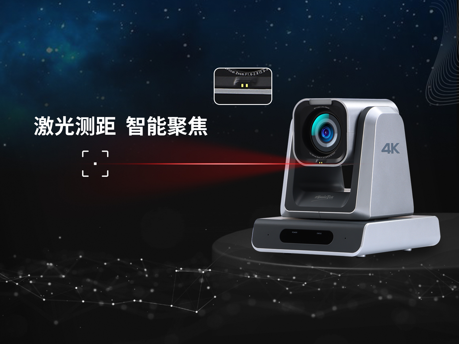 ZowiePTZ 的12X變焦鏡頭還增加了TOF(Time of Flight)模塊,可以精確計算飛行時間,準(zhǔn)確測量相機(jī)與目標(biāo)之間的距離,實現(xiàn)快速聚焦。非常適合直播等應(yīng)用場景。