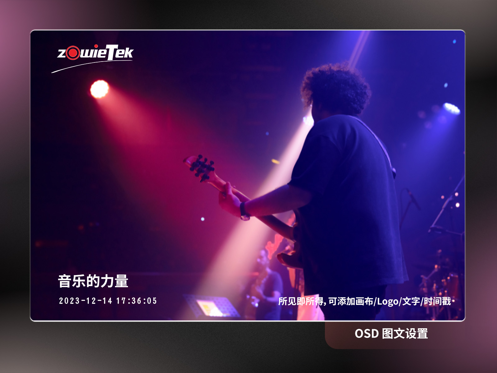 ZowiePTZ有強(qiáng)大的OSD功能,可設(shè)置多種文字、畫布、logo、時間戳等,無需使用第三方工具,即可完成一場專業(yè)直播。