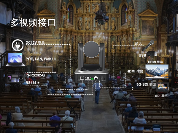 該攝像機支持同時輸出 HDMI、3G-SDI、USB3.0 和 IP 流媒體。它通過 SDI、HDMI 和 USB 接口提供嵌入式音頻,確保與廣播工作流程、會議系統(tǒng)以及直接連接到計算機的視頻采集無縫集成。無論是在傳統(tǒng)的 AV 設(shè)置還是混合流媒體場景中,連接性都不再是限制。