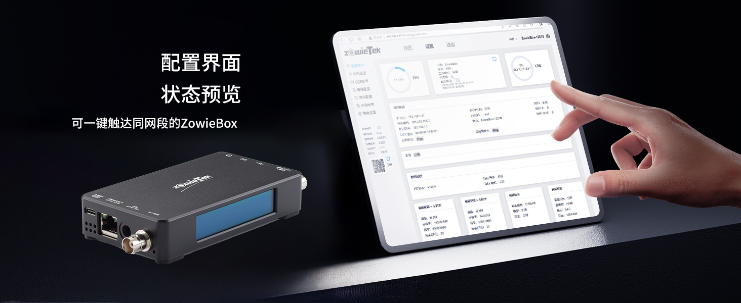 基于瀏覽器的 GUI,您可以通過電腦、手機(jī)、iPad、WiFi 或熱點(diǎn)進(jìn)行控制。只要用戶的手機(jī)、電腦和 ZowieBox 在同一網(wǎng)絡(luò)中,他們無需 IP 地址即可登錄控制界面。此外,用戶可以在配置界面中找到同一網(wǎng)段內(nèi)的 ZowieBox,并一鍵控制。