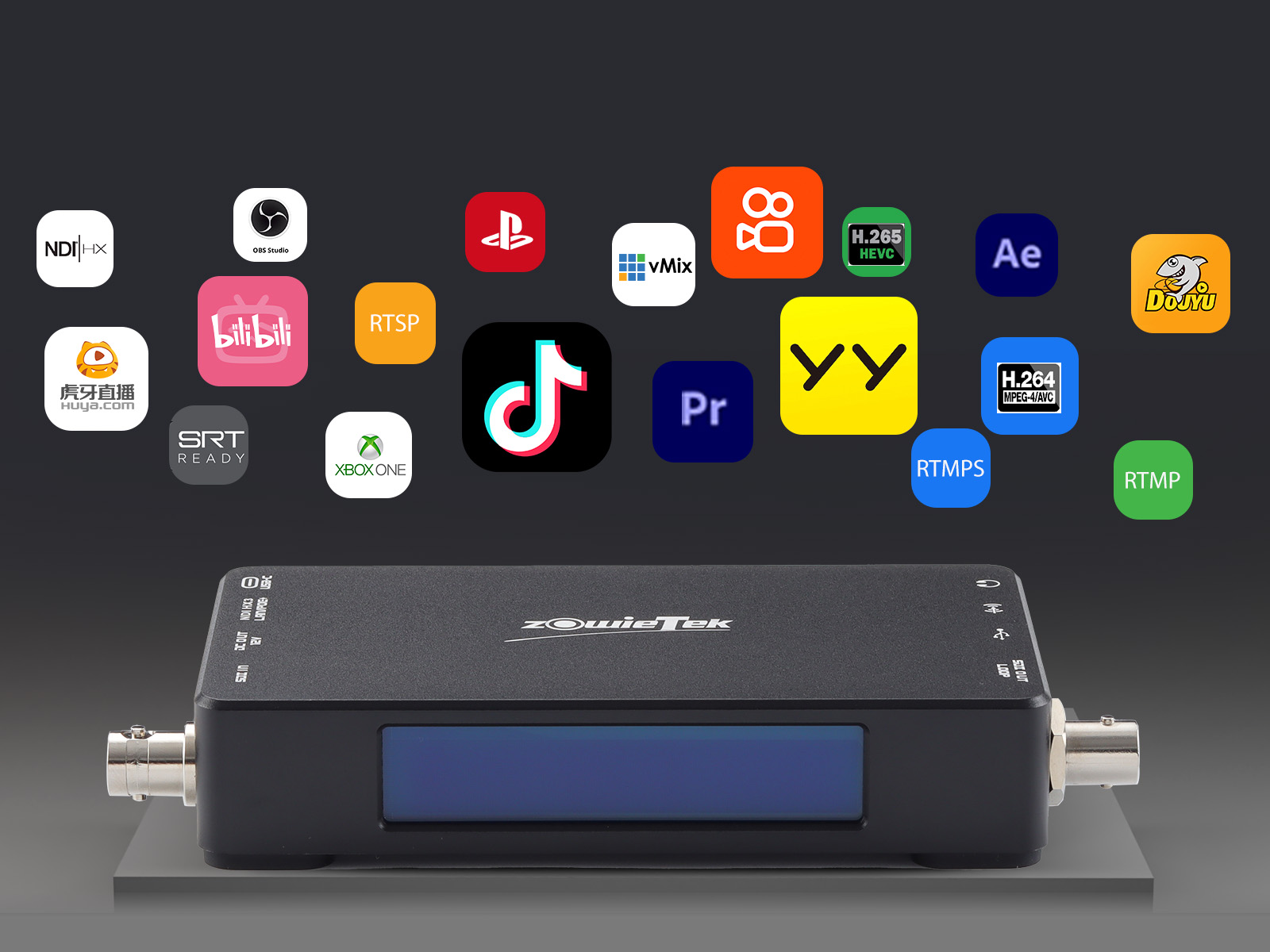 ZowieBox 支持同時(shí)進(jìn)行流媒體和錄制,視頻幀率可達(dá) 60fps,并支持 24 幀電影幀率。輸入內(nèi)容可以錄制為文件,存儲(chǔ)到 TF 卡、USB 存儲(chǔ)或 NAS。前置迷你屏幕可以實(shí)時(shí)顯示當(dāng)前設(shè)置和工作狀態(tài)。如果您有無限存儲(chǔ)空間,還可以選擇下一代 HEVC 格式進(jìn)行歸檔和編輯。