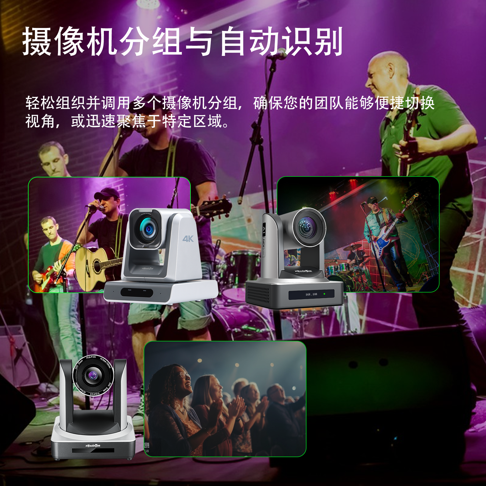 將攝像機合理分組,并輕松切換。Zowie KBD自動檢測并識別兼容攝像機,即使在復雜的多攝像機環(huán)境中也能確保無縫過渡和簡化操作。