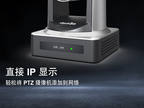 全新 PTZ 攝像機(jī)配備內(nèi)置 OLED 顯示屏,可實時顯示當(dāng)前輸出分辨率和 IP 地址等關(guān)鍵信息。這讓現(xiàn)場制作或系統(tǒng)集成時能夠快速直觀地設(shè)置和監(jiān)控設(shè)備,無需登錄網(wǎng)頁界面或使用外部工具。它是高效現(xiàn)場部署的理想補(bǔ)充。